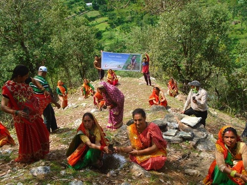 Community members involved in sapling plantation in 17 villages of Nainital and 6 villages of Almora in Uttarakhand, India
