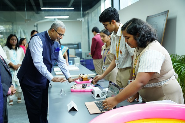 Students present their projects to Mr. D. B. Venkatesh Varma, Former Indian Ambassador to Russia and Spain during the MS Lab Inauguration