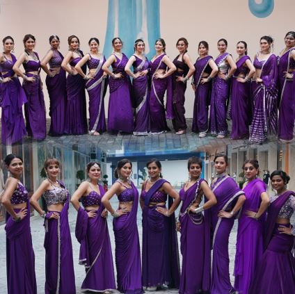 Season 14 queens of Haut Monde Mrs. India Worldwide, serving elegance and energy in stunning indigo sarees, vibing in style at Voco Monaco, Dubai