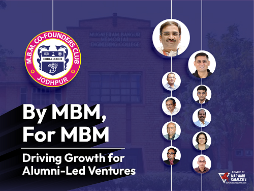 We are thrilled to unveil the MBM Co-founders Club, a landmark initiative born from the spirit of “By MBM, For MBM.” Crafted in close collaboration with some of our most respected alumni-Vipul Kocher (Founder & CEO, TestAIng.com), BL Mohatta (CEO MEC Tubes), Virendra Gupta (Founder & CEO Dailyhunt) and Sushil Sharma (Founder & CEO, Marwari Catalysts)-this exclusive subfund is more than a financial vehicle; its a legacy in motion.