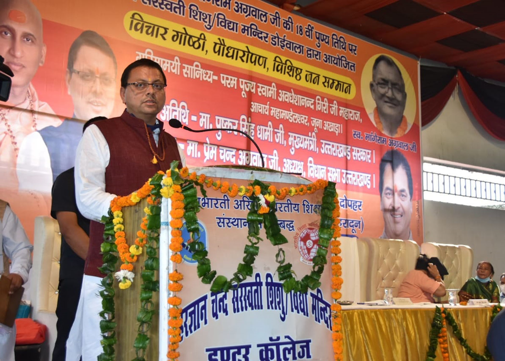 मुख्यमंत्री श्री पुष्कर सिंह धामी मंगलवार को समाज सेवी स्व. मांगेराम अग्रवाल की 18 वीं पुण्यतिथि के अवसर पर हर ज्ञान चन्द सरस्वती शिशु विद्या मंदिर डोईवाला द्वारा आयोजित विचार गोष्ठी में शामिल हुए। इस अवसर पर मुख्यमंत्री ने शिशु विद्या मंदिर के परिसर में पौधा रोपण करने के साथ ही कोरोना काल में सराहनीय सहयोग के लिये कई चिकित्सकों एवं समाज सेवियों को सम्मानित किया। उन्होंने इस अवसर पर मेधावी छात्राओं को सम्मान स्वरूप 55 हजार की धनराशि प्रदान की। मुख्यमंत्री ने इस अवसर पर 85 गरीब परिवारों को राशन किट भी वितरित किये। इस अवसर पर अपने सम्बोधन में मुख्यमंत्री श्री पुष्कर सिंह धामी ने कहा कि स्व. मांगे राम अग्रवाल जी ने अपने सामाजिक दायित्वों का निर्वहन करते हुए समाज सेवा के माध्यम से समाज को नई दिशा दी।