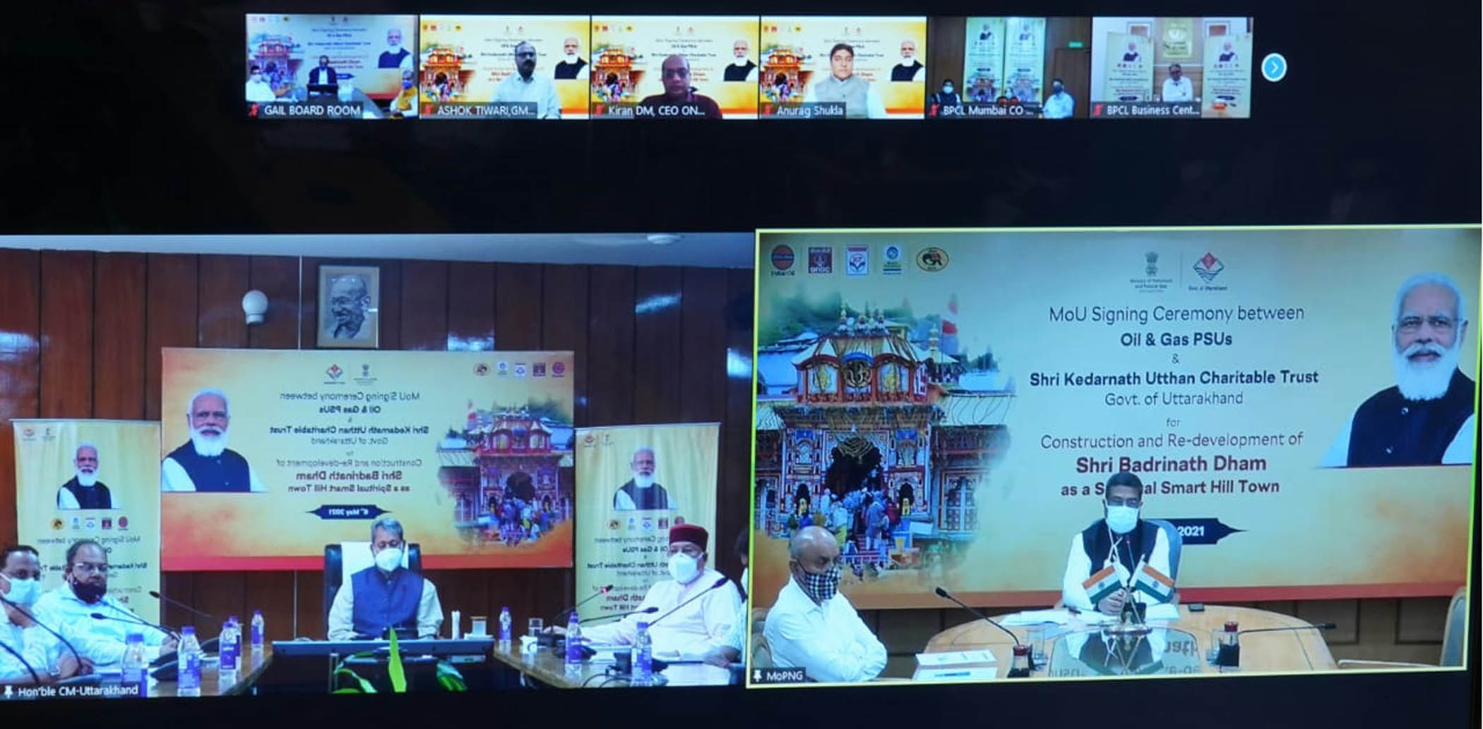 मुख्यमंत्री श्री तीरथ सिंह रावत व केंद्रीय पेट्रोलियम मंत्री श्री धर्मेंद्र प्रधान की मौजूदगी में आज श्री केदारनाथ उत्थान ट्रस्ट व तेल एवं प्राकृतिक गैस मंत्रालय की पब्लिक सेक्टर कंपनियों के मध्य श्री बदरीनाथ धाम को स्मार्ट स्पिरिचुअल टाउन के रूप में विकसित करने को लेकर लगभग 100 करोड़ के कार्यों के समझौता ज्ञापन पर हस्ताक्षर हुए। समझौता पत्र पर पेट्रोलियम मंत्रालय की ओर से सचिव श्री तन्नू कपूर व उत्तराखण्ड की ओर से पर्यटन सचिव श्री दिलीप जावलकर ने हस्ताक्षर किए। सचिवालय में वर्चुअल रूप से आयोजित कार्यक्रम को संबोधित करते हुए मुख्यमंत्री श्री तीरथ सिंह रावत ने कहा कि माननीय प्रधानमंत्री श्री नरेन्द्र मोदी जी की प्रेरणा व मार्गदर्शन में वर्ष 2013 में आई आपदा के बाद पुनर्निर्माण के कार्य शुरू हुए थे जो कि अब अपने अंतिम चरणों में हैं। इसी कड़ी में प्रधानमंत्री जी ने बदरीनाथ धाम के कायाकल्प का भी निर्णय लिया।